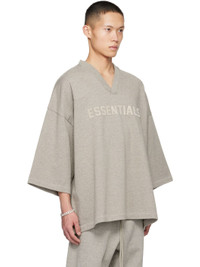 Cotton jersey T-shirt. · Rib knit V-neck · Logo bonded at front · Dropped shoulders · Rubberized logo patch at back Supplier color: Dark heather oatmeal