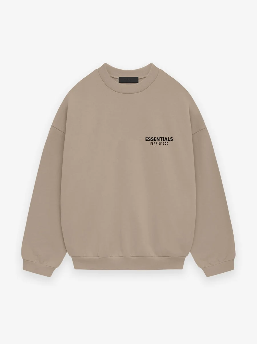 The Essentials Fleece Crewneck is made in heavy 480gsm core fleece to provide additional body and structure. The signature "Essentials Fear of God" soft-touch logo returns on the chest and across the back. Details include a rib-knit collar, cuffs, and waist-hem. The Essentials Fear of God rubberized label is at the back collar. DETAILS - 80% cotton / 20% polyester fleece, 480GSM - Essentials fit - relaxed body, sleeves - "Essentials Fear of God" soft-touch logo on chest and back - Rib-knit collar, cuffs, and waist hem - Side pockets - Essentials Fear of God rubberized label - Imported