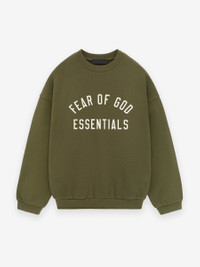 The Essentials Fleece Crewneck has been updated in a heavier 480gsm core fleece to provide additional body and structure. The "Fear of God Essentials" collegiate graphic is screen printed on the front. Details include a rib-knit collar, cuffs, and waist-hem. The Essentials Fear of God rubberized label is at the back collar. DETAILS - 80% cotton / 20% polyester fleece, 480GSM - Essentials fit - relaxed body, sleeves - "Fear of God Essentials" screen print - Rib-knit collar, cuffs, and waist hem - Side pockets - Essentials Fear of God rubberized label - Imported