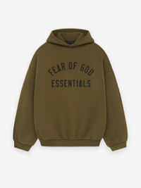 The Essentials Fleece Hoodie has been upgraded in a heavier 480gsm core fleece to provide additional body and structure. A collegiate-inspired "Fear of God Essentials" graphic is screen printed on the front. Details include an overlapped neckline hoodie, rib-knit cuffs, waist-hem, and side pockets. The Essentials Fear of God rubberized label is at the back collar. DETAILS - 80% cotton / 20% polyester fleece, 480GSM - Essentials fit - relaxed body, sleeves - "Fear of God Essentials" screen print - Overlapped neckline hoodie - Rib-knit cuffs, and waist hem - Side Pockets - Essentials Fear of God rubberized label - Imported