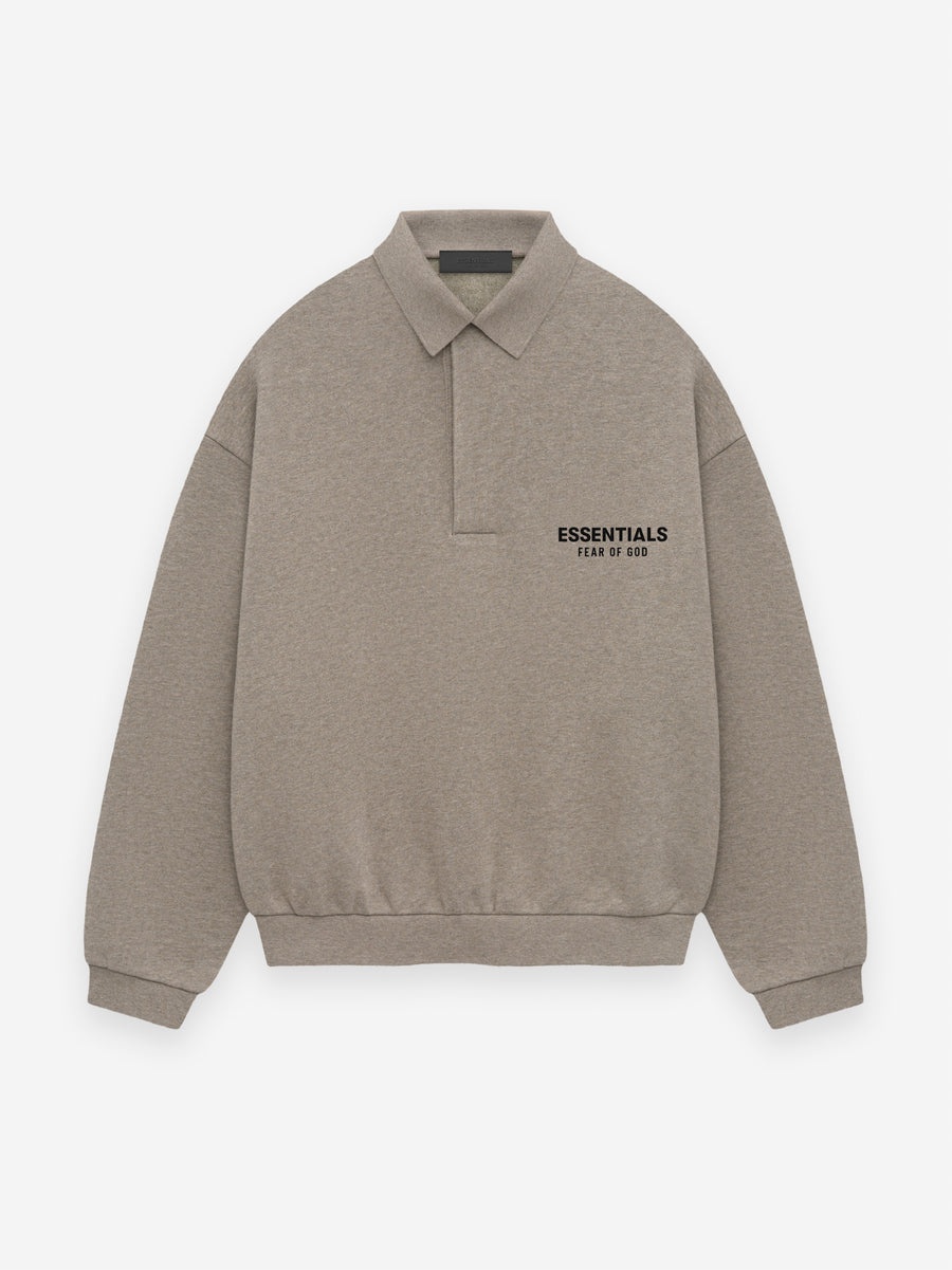 The Fleece Polo is made in a heavy 480gsm core fleece to provide additional body and structure. The signature "Essentials Fear of God" soft-touch logo returns on the chest and across the back. Details include a rib-knit polo collar, cuffs, and waist-hem. The Essentials Fear of God rubberized label is at the back collar. DETAILS - 80% cotton / 20% polyester fleece, 480GSM - Essentials fit - relaxed body, sleeves - ""Essentials Fear of God"" soft-touch logo on chest and back - Rib-knit polo collar, cuffs, and waist hem - Polo placket - Essentials Fear of God rubberized label - Imported