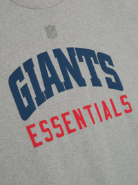 The Giants Sport 3/4 Sleeve Football Tee is crafted from heavy 100% cotton jersey and designed in an extra-oversized fit with proportions inspired by 90s throwback football jerseys. The front features a bold "Giants Essentials" puff-print graphic paired with the NFL shield, while the back displays the official New York Giants logo. Additional details include rib-knit collar, and 3/4 sleeves with raw hemline. The look is finished with the signature rubberized Fear of God Essentials label. Important Fit Note: Size Medium fits like Classic Tee XL. DETAILS - 100% COTTON HEAVY JERSEY - 90s OVERSIZED FOOTBALL FIT - GIANTS ESSENTIALS GRAPHIC - NEW YORK GIANTS LOGO - FEAR OF GOD ESSENTIALS LABEL - 3/4 SLEEVES WITH RAW HEMLINE - RIB KNIT COLLAR - IMPORTED