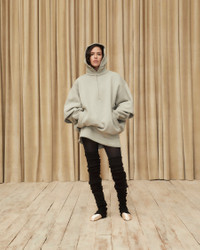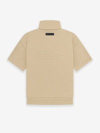 The half zip 3/4 sleeve sweatshirt is made in heavyweight fleece to provide a structured silhouette. The sportswear piece includes a standup collar, front slash pockets, and rib-knit waist hem. A modern rubberized Essentials Fear of God logo is across the back, along with the trademark rubberized label. DETAILS - 80% cotton / 20% polyester heavyweight fleece - Essentials Fear of God rubberized logo on back - Essentials rubberized label - 3/4 sleeve - Half-zip front - Front slash pockets - Standup collar, and rib-knit waist hem - Imported - ESSENTIALS products are currently not available for purchase or shipment to Europe including Belgium, Luxembourg, and the Netherlands.