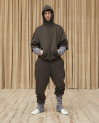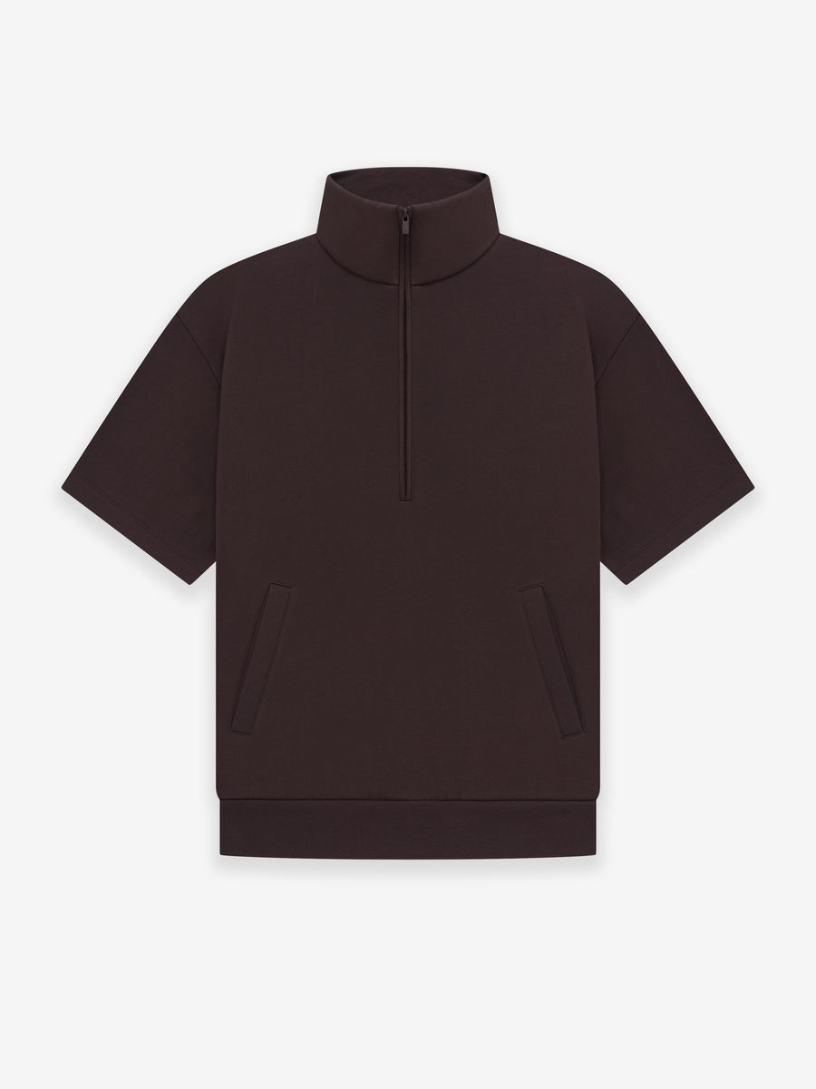 The half zip 3/4 sleeve sweatshirt is made in heavyweight fleece to provide a structured silhouette. The sportswear piece includes a standup collar, front slash pockets, and rib-knit waist hem. A modern rubberized Essentials Fear of God logo is across the back, along with the trademark rubberized label. DETAILS - 80% cotton / 20% polyester heavyweight fleece - Essentials Fear of God rubberized logo on back - Essentials rubberized label - 3/4 sleeve - Half-zip front - Front slash pockets - Standup collar, and rib-knit waist hem - Imported - ESSENTIALS products are currently not available for purchase or shipment to Europe including Belgium, Luxembourg, and the Netherlands.