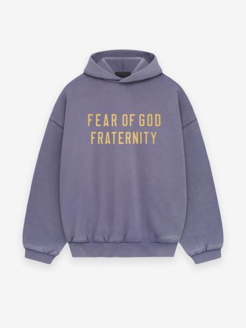 The Heavy Fleece Hoodie is made from heavyweight 520gsm, 100% cotton fleece with a subtle vintage wash. The designed volume creates a round, cropped silhouette. A collegiate-inspired "Homecoming" graphic is screen-printed on the front. Details include an overlapped neckline hoodie, rib-knit cuffs, waist-hem, and side pockets. The Essentials Fear of God rubberized label is stitched on the hood. DETAILS - 100% cotton fleece, 520GSM - Essentials fit - relaxed body, sleeves - Vintage Wash - "Homecoming" screen print - Overlapped neckline hoodie - Rib-knit cuffs, and waist hem - Side Pockets - Essentials Fear of God rubberized label - Imported