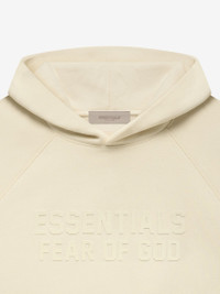 The signature fleece hoodie is detailed with an Essentials Fear of God logo in a tonal velvet flocking reminiscent of vintage athletic school uniforms. A kangaroo pocket, rib-knit cuffs, and waist hem frame the piece. An Essentials rubberized label is stitched on the double-layered hood. DETAILS - Classic Essentials fit - 80% cotton / 20% polyester heavyweight fleece - Essentials Fear of God flocked logo on chest - Essentials rubberized label - Rib-knit cuffs and waist hem - Kangaroo pocket - Imported - ESSENTIALS products are currently not available for purchase or shipment to Europe including Belgium, Luxembourg, and the Netherlands.