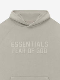 The signature fleece hoodie is detailed with a modern rubberized Essentials Fear of God logo. A kangaroo pocket, rib-knit cuffs, and waist hem frame the piece. An Essentials rubberized label is stitched on the double-layered hood. DETAILS - Classic Essentials fit - 80% cotton / 20% polyester heavyweight fleece - Essentials Fear of God rubberized logo on chest - Essentials rubberized label - Rib-knit cuffs and waist hem - Kangaroo pocket - Imported - ESSENTIALS products are currently not available for purchase or shipment to Europe including Belgium, Luxembourg, and the Netherlands.