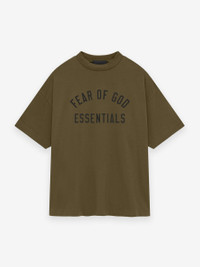 The Essentials Tee is made from core 100% cotton jersey. The rib-knit crewneck tee fits relaxed in the body with dropped shoulders. The "Fear of God Essentials" collegiate graphic is screen printed on the center front, and Essentials Fear of God rubberized label is at the back collar. DETAILS - 100% cotton jersey, 220gsm - Essentials fit - relaxed body and sleeves - "Fear of God Essentials" screen print - Rib-knit collar - Essentials Fear of God rubberized label - Imported