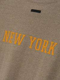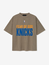The Knicks 90s Tee is cut from 100% cotton jersey, offering a soft yet substantial hand feel. Designed in an oversized 90s-inspired silhouette, it features exaggerated proportions with dropped shoulders for a relaxed drape. The front is defined by a bold puffer-print application of the "Fear of God Knicks" lockup, alongside the authentic NBA insignia. The New York puffer print logo is across the back and the signature rubberized Fear of God Essentials label at the collar. Fit Note: Size Medium fits like Classic Tee XL. DETAILS - 100% COTTON JERSEY, 220GSM - ESSENTIALS 90S FIT - OVERSIZED BODY AND SLEEVES - FEAR OF GOD KNICKS LOCKUP - NBA LOGO - NEW YORK LOGO - CLASSIC RIB-KNIT COLLAR - FEAR OF GOD ESSENTIALS RUBBERIZED LABEL AT BACK COLLAR - IMPORTED