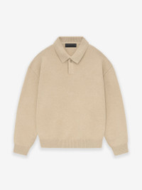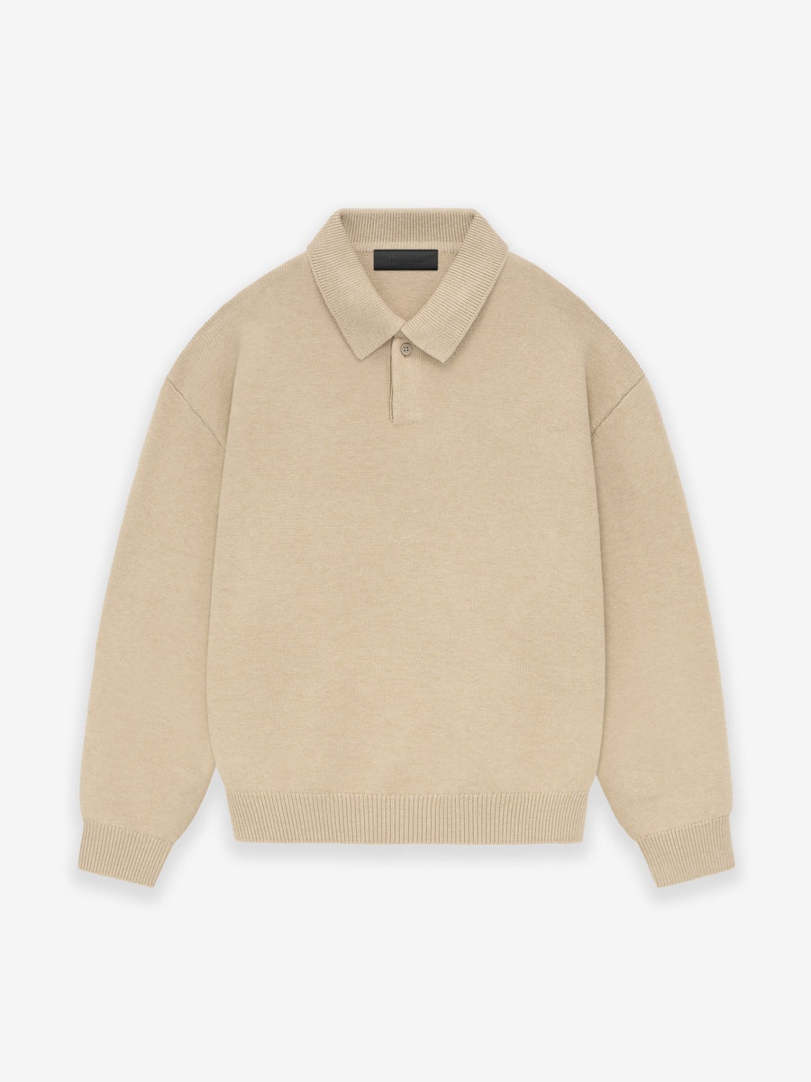 The classic Essentials polo is elevated in a sweater knit to provide appealing softness, body, and texture. A rib-knit polo collar, cuffs, and a waist hem frame the piece. A Fear of God rubberized label is stitched on the back. Model is 6'1 and wears size Medium. DETAILS - 88% polyester / 12% nylon knit - Fear of God rubberized label - Single button placket - Rib-knit polo collar, cuffs and waist hem - Imported