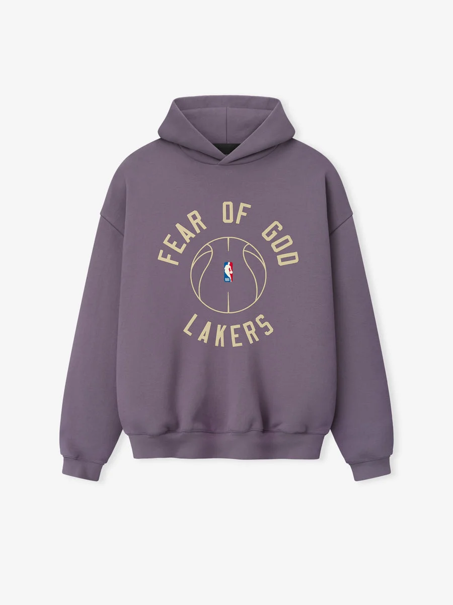 The Lakers x Barkley Hendricks 90s Hoodie is crafted from 520GSM heavyweight cotton fleece and designed in a relaxed, 90s-inspired silhouette. The front features a puff-printed FEAR OF GOD LAKERS graphic paired with the official NBA logo, while the back showcases Barkley Hendricks’ iconic Basketball Series artwork rendered in a 3D print that captures the texture and emotion of his brushstrokes. Finishing details include side pockets, rib-knit cuffs and waist hem, and a Fear of God Essentials label on the hood.