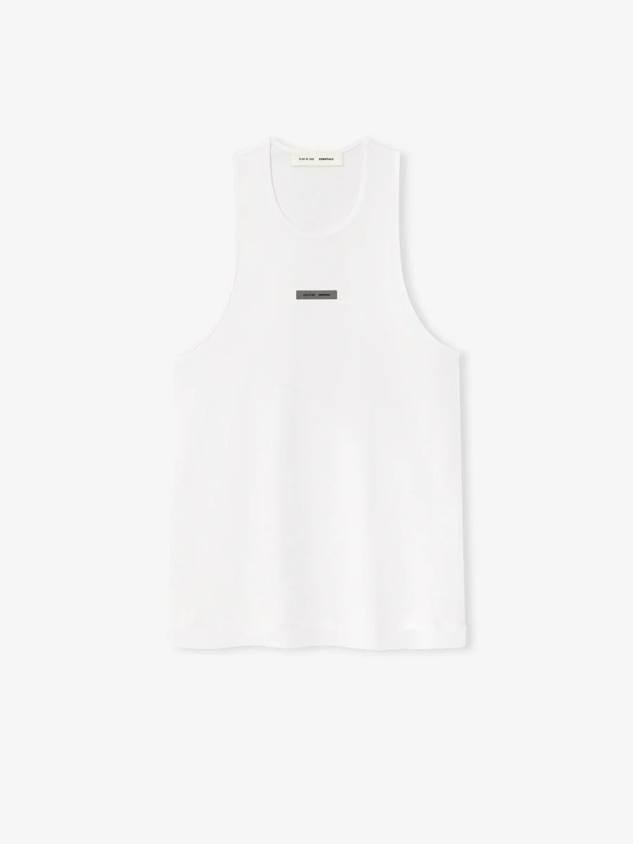 The Light Essential Tank is crafted from lightweight 100% cotton jersey. The U-neck tank features a vintage fit for a slimmer silhouette with longer length. Branding includes a "Fear of God Essentials" rubberized label at the center front and the "Essentials Fear of God" logo at the back collar. DETAILS - " - 100% cotton, 200-gram - Model is 6'3" and wears size Medium in Heather Stone - Vintage fit -slimmer body, longer length - U-neck and armhole piping - "Fear of God Essentials" translucent rubberized label - "Essentials Fear of God" logo - Imported