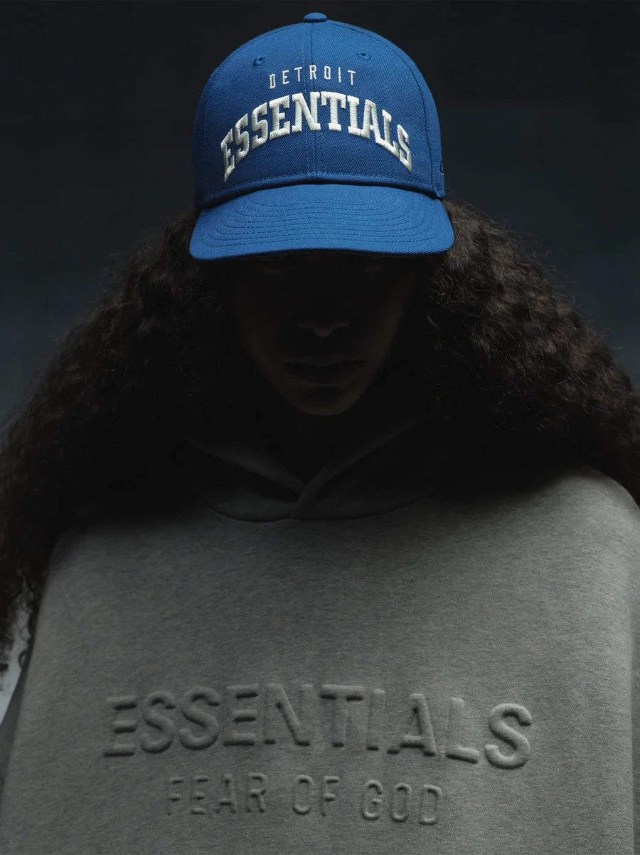 The Fear of God Essentials Lions 9Fifty RC Snapback Cap features a "Detroit Essentials" lockup, complemented by the official Detroit Lions logo at the back. The 9Fifty RC or "Retro Crown" is designed for a more vintage, casual feel. Additional features include an embroidered New Era logo on the side and an adjustable snapback closure at the rear. DETAILS - 950RC SNAPBACK CAP - RETRO CROWN - VINTAGE FIT - CONTRASTING GREY UNDERVISOR - EMBROIDERED DETROIT ESSENTIALS GRAPHIC - LIONS LOGO - EMBROIDERED NEW ERA SCRIPT LOGO ON SIDE - SNAPBACK CLOSURE - 100% POLYESTER - IMPORTED