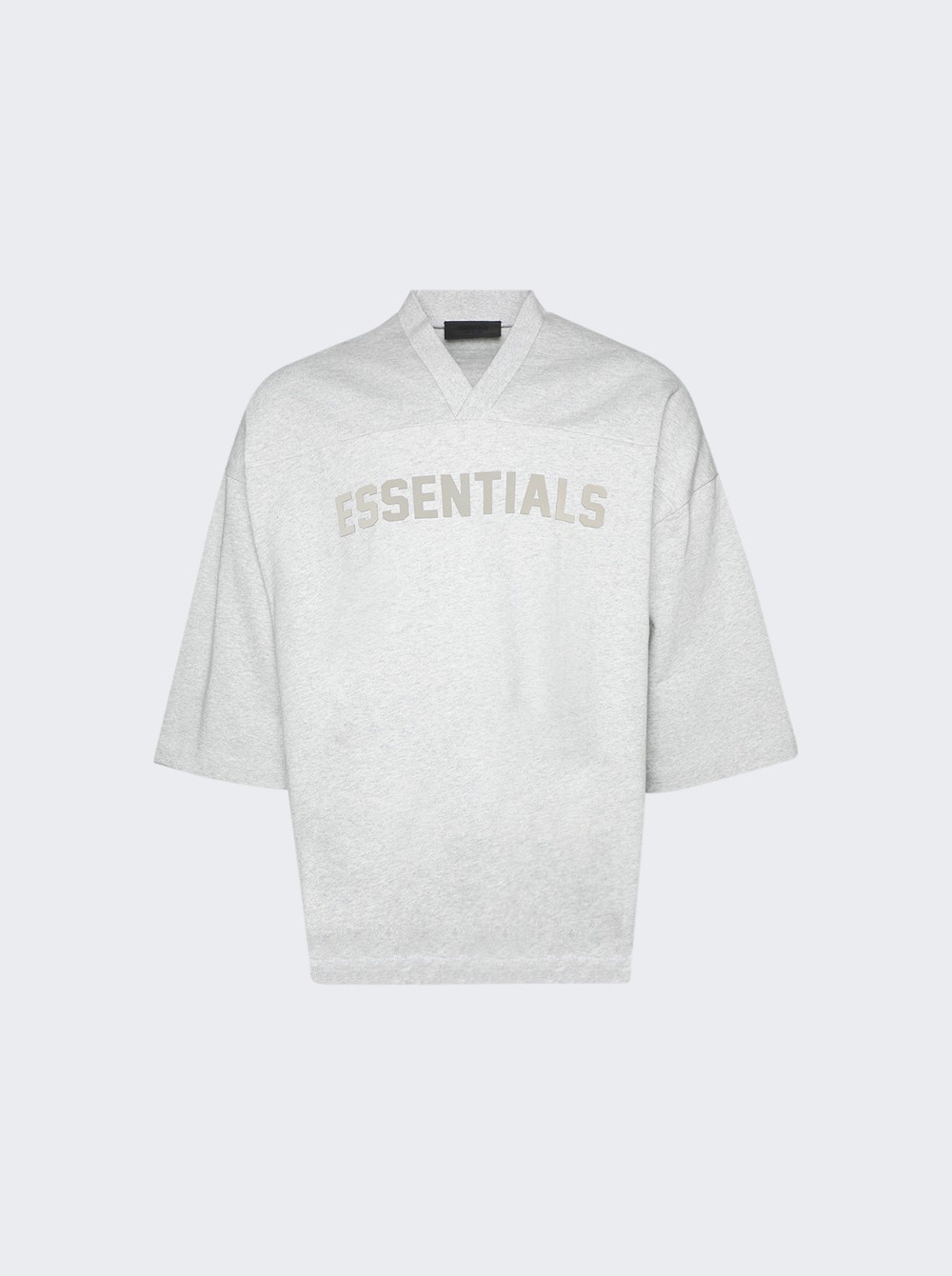 Details - Relaxed fit - V neckline - 3/4 sleeves - Dropped shoulders - Rubber logo label at the back collar - Tonal stitching - Straight hem Dimensions: Model is 6'1"/185cm and is wearing a size M Composition: 100% Cotton Care: Care according to label Brand Style: 125SP244106F Designer/Brand: FEAR OF GOD ESSENTIALS