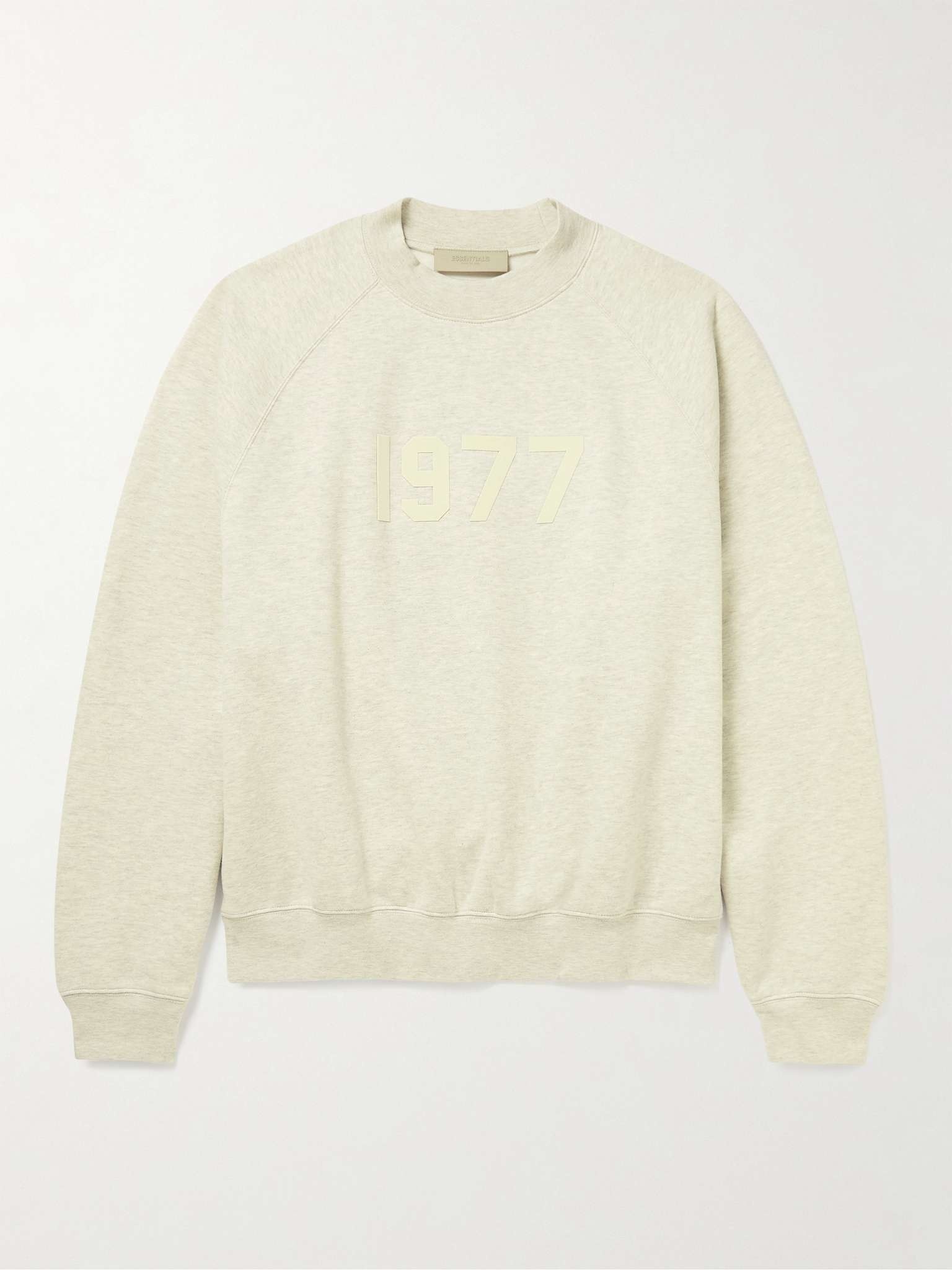Fear of God Essentials selects the best fabrics for comfort and longevity - this sweatshirt, for instance, is made from fleece-back cotton-blend jersey that has a really soft handle. It's flocked across the chest with '1977' - the year of founder Jerry Lorenzo's birth. Size & Fit - Fits true to size. Take your normal size - The model is wearing a size larger to achieve a relaxed fit - This regular cut sweatshirt is designed for a comfortable fit - Mid-weight, slightly stretchy fabric - Model wears a M - Model measures: chest 36"/ 92cm, height 6'2"/ 188cm Details & Care - Light-grey fleece-back cotton-blend jersey - Crew neck, flocked and appliquéd designer emblems, ribbed trims - 80% cotton, 20% polyester - Hand wash - Designer colour: Light Oatmeal - This item has been imported