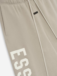 The Lounge Sweatpant is crafted from 380gsm core fleece, offering both body and structure. The lounge fit is designed with oversized proportions for voluminous drape throughout. A bold "ESSENTIALS" logo is screen-printed down the leg. Additional details include an encased elastic waistband and bottom hem, elongated drawstrings, and side seam pockets. The front center showcases a rubberized label bearing the" Fear of God Essentials" logo. DETAILS - 80% cotton / 20% polyester fleece, 380-gram - Model is 6'1" and wears size Large in Homestead Heather - Lounge fit - oversized, voluminous leg and seat - "Essentials" screenprint logo - Encased elastic waistband - Heavyweight drawstring with rubberized tip - Side seam pockets - "Fear of God Essentials" translucent rubberized label - Imported