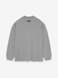 The Essentials longsleeve T-shirt is made in the core cotton jersey. The rib-knit crewneck fits relaxed in the body with dropped shoulders. New minimalist branding is seen in the rubberized Essentials Fear of God black bar on the center front. The Fear of God rubberized label is at the back collar. DETAILS - 100% cotton jersey, 220gsm - Essentials fit - relaxed body and sleeves - Classic rib-knit collar and cuffs - Essentials Fear of God black bar at center front - Fear of God rubberized label at back collar - Imported