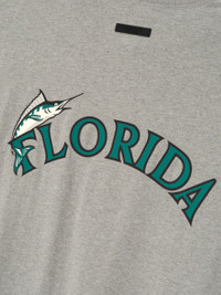 The Marlins 90s Tee is cut from 100% cotton jersey, offering a soft yet substantial hand feel. Designed in an oversized 90s-inspired silhouette, it features exaggerated proportions with dropped shoulders for a relaxed drape. The front is defined by a bold puffer-print application of the "Fear of God Marlins" lockup, alongside the MLB insignia. Across the back, an official Florida logo anchors the piece with the signature rubberized Fear of God Essentials label at the collar. Fit Note: Size Medium fits like Classic Tee XL. DETAILS - 100% COTTON JERSEY, 220GSM - ESSENTIALS 90s FIT - RELAXED BODY AND SLEEVES - FEAR OF GOD MARLINS GRAPHIC - MLB LOGO - FLORIDA LOGO - CLASSIC RIB-KNIT COLLAR - FEAR OF GOD ESSENTIALS RUBBERIZED LABEL AT BACK COLLAR - IMPORTED