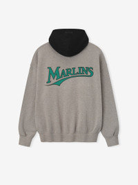 The Marlins Sport Hoodie is crafted from core fleece, offering an elevated balance of softness, structure, and lasting comfort. Cut in a relaxed sport fit, it drapes with more ease through the body and extended length compared to the Essentials classic silhouette. The front features a bold puffer-print graphic reading "Florida Essentials" alongside the official MLB insignia, while the back is finished with the authentic Marlins logo. Additional features include a contrasting hood, kangaroo pocket, rib-knit at the cuffs and waist hem. The signature rubberized Fear of God Essentials label accents the hood. DETAILS - 80% COTTON / 20%POLYESTER FLEECE - ESSENTIALS SPORT FIT: RELAXED, CROPPED - FLORIDA ESSENTIALS + MARLINS LOGO - MARLINS LOGO - KANGAROO POCKET - ELASTIC BINDING AT CUFF AND WAIST HEM - IMPORTED