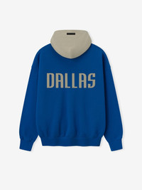 The Mavs Sport Hoodie is crafted from core fleece, offering an elevated balance of softness, structure, and lasting comfort. Cut in a relaxed sport fit, it drapes with more ease through the body and extended length compared to the Essentials classic silhouette. The front features a bold puff-print graphic "Mavericks Essentials " alongside the authentic NBA logo, while the back showcases the official "Dallas" logo. Additional features include contrasting hood, side pockets, rib-knit at the cuffs and waist hem. The signature rubberized Fear of God Essentials label accents the hood. DETAILS - 80% COTTON / 20%POLYESTER FLEECE - ESSENTIALS SPORT FIT: RELAXED, CROPPED - MAVERICKS ESSENTIALS LOCKUP - NBA LOGO - DALLAS LOGO - FEAR OF GOD LABEL - SIDE POCKETS - ELASTIC BINDING AT CUFF AND WAIST HEM - IMPORTED