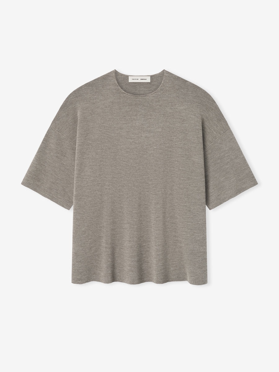 The Merino Short Sleeve Sweater is made from 100% merino wool. The relaxed fit is designed for comfort with drop shoulders. Additionally, a "Fear of God Essentials" rubberized label is stitched at the back collar. DETAILS - 100% merino wool - Model is 6'1" and wears size Medium in Heather Stone - Essentials fit - relaxed body, drop shoulders - Rib-knit collar - "Fear of God Essentials" translucent rubberized label - Imported
