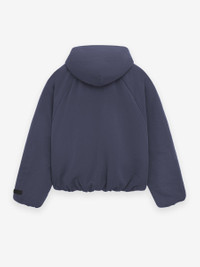 The Military Nylon Hooded Bomber is made in nylon-viscose with a full perforated poly lining for comfort. The boxy, cropped hoodie style has a full front zip, side pockets, elastic cuffs and waist hem. The Essentials Fear of God black bar is stitched on the sleeve. DETAILS - 38% recycled nylon, 38% recycled viscose, 24% nylon - 100% polyester perforated lining - Short, boxy fit - Full front zip - Side pockets - Elastic hem cuffs, and waist hem - Essentials Fear of God rubberized label - Imported