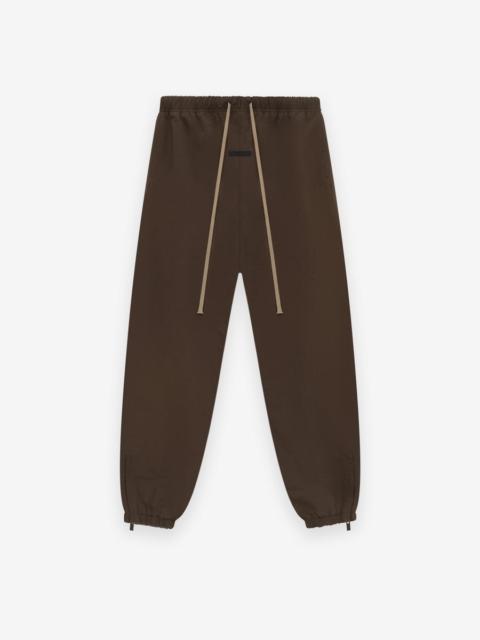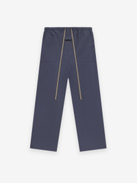 The Military Nylon Utility Pant is constructed in nylon-viscose with a full perforated poly lining for comfort. The wide leg fit pant has front fatigue pockets, encased elastic waistband, elongated drawstring, and side pockets. Minimalist branding is seen in the Essentials Fear of God black bar at center front. DETAILS - 38% recycled nylon, 38% recycled viscose, 24% nylon - 100% polyester perforated lining - Wide leg fit - Front fatigue pockets - Encased elastic waistband - Heavyweight drawstring with rubberized tip - Side pockets - Essentials Fear of God rubberized label - Imported