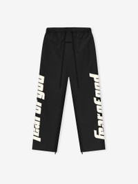 The MLB Trackpants are constructed in nylon-spandex and designed with a wide straight leg fit, similar to the Essentials Lounge Sweatpant. Details include a bold Fear of God puffer print logo down the leg, elastic waistband, elongated drawstring, and side pockets, and adjustable zippers at the bottom hems. The Fear of God Essentials black bar at the center front. Size Note: size down for classic fit. DETAILS - 84% NYLON / 16% SPANDEX - CLASSIC FIT - RELAXED LEG AND SEAT - MLB ESSENTIALS LOCKUP - ENCASED ELASTIC WAISTBAND - HEAVYWEIGHT DRAWSTRING - SIDE SEAM POCKETS - FEAR OF GOD ESSENTIALS LABEL - IMPORTED
