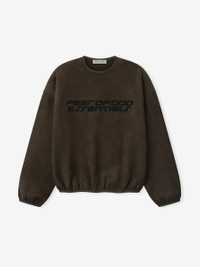 The Modern Crewneck Sweatshirt is crafted from bonded suede fleece, offering a plush, suede-like hand feel that complements the modern fit with an wider oversized silhouette. The piece is detailed with an HD-printed “Fear of God Essentials” lockup, while finishing touches include short rib-knit collar, cuff, and waist hem. A Fear of God Essentials rubberized label stitched at the back collar. DETAILS - 8%COTTON / 92% POLYESTER SUEDE FLEECE, 390GSM - MODERN FIT - WIDER OVERSIZED - FEAR OF GOD ESSENTIALS HD PRINT GRAPHIC - RIB-KNIT COLLAR, CUFFS, WAIST HEM - HEAVYWEIGHT DRAWSTRING - FEAR OF GOD ESSENTIALS LABEL - IMPORTED