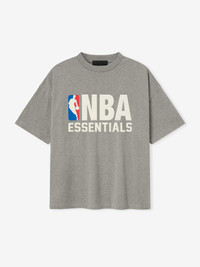 The NBA 90s Tee is cut from 100% cotton jersey, offering a soft yet substantial hand feel. Designed in an oversized 90s-inspired silhouette, it features exaggerated proportions with dropped shoulders for a relaxed drape. The front is defined by a bold puffer-print application of the "NBA ESSENTIALS" lockup, alongside the authentic NBA insignia. The signature rubberized Fear of God Essentials label at the collar. DETAILS - 100% COTTON JERSEY, 220GSM - ESSENTIALS 90s FIT - OVERSIZED BODY AND SLEEVES - NBA ESSENTIALS - NBA LOGO - CLASSIC RIB-KNIT COLLAR - FEAR OF GOD ESSENTIALS RUBBERIZED LABEL AT BACK COLLAR - IMPORTED