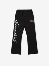 The NBA Flare Sweatpant is crafted from 480gsm heavy core fleece, offering both structure and body to its relaxed, flared-leg silhouette. One leg features a bold ESSENTIALS script print lockup, while the NBA emblem accents the other. Finishing details include an encased elastic waistband with elongated drawcords, side seam pockets, and a Fear of God Essentials rubberized label stitched at the center front. DETAILS - 80%COTTON / 20% POLYESTER FLEECE, 480GSM - FLARE LEG - RELAXED AND FLARED LEG - ESSENTIALS SCRIPT PRINT - NBA EMBLEM - ENCASED ELASTIC WAISTBAND - HEAVYWEIGHT DRAWSTRING - SIDE SEAM POCKETS - FEAR OF GOD ESSENTIALS LABEL - IMPORTED