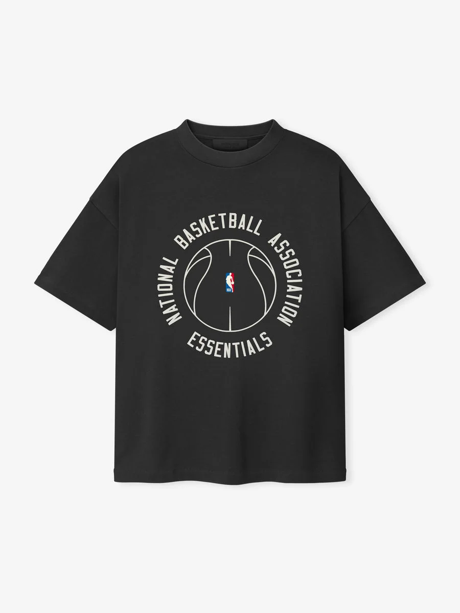 The NBA x Barkley Hendricks 90s Tee is cut from 100% cotton heavy jersey, offering a soft yet substantial hand feel. Designed in an oversized 90s-inspired silhouette, it features exaggerated proportions with dropped shoulders for a relaxed drape. The front features a puff-printed NATIONAL BASKETBALL ASSOCIATION ESSENTIALS graphic paired with the official NBA logo, while the back highlights a Barkley Hendricks Fear of God lockup. The Fear of God Essentials label is at the collar. Fit Note: Size Medium fits like Classic Tee XL.