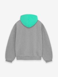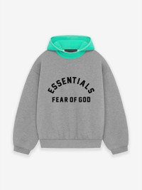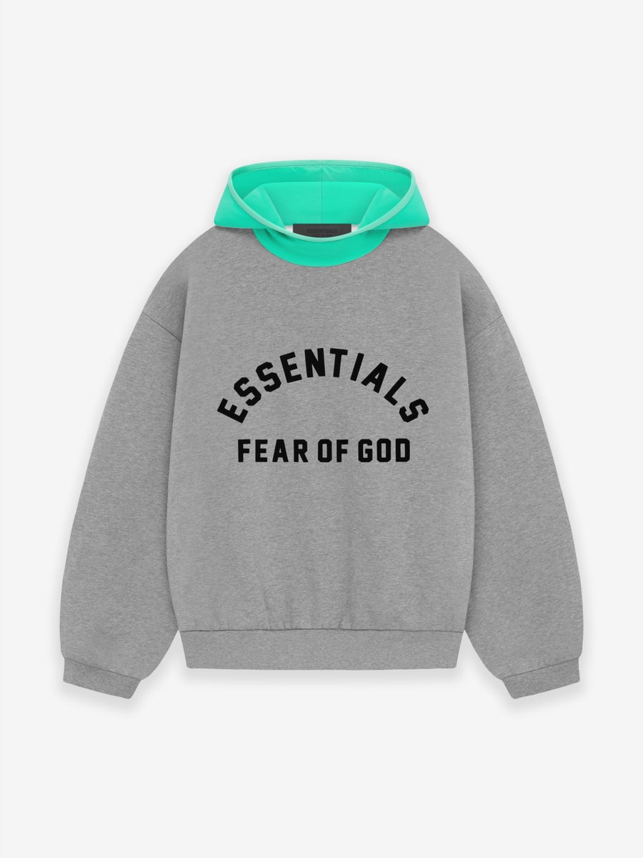 A fresh new style to the collection, the Essentials nylon fleece hoodie is made in core fleece with a contrasting stretch nylon hood. The piece is designed with volume to create a round, cropped silhouette. Details include mock neckline, side seam pockets, and rib-knit cuffs, waist hem. A collegiate-inspired Essentials Fear of God logo on the center front is made modern in a rubberized soft-touch texture. A Fear of God rubberized label is at the back collar. DETAILS - 80% cotton / 20% polyester heavyweight fleece with 86%/14% spandex hood - Essentials fit - relaxed body, sleeves - Mockneck hoodie with stretch binding - Rib-knit cuff and tapered waistband - Essentials Fear of God soft-touch rubberized logo - Side seam pockets - Fear of God rubberized label at back collar - Imported