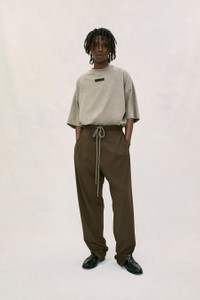 The Essentials track pant is made in stretch woven nylon and designed in a classic straight leg fit. Additional details include an encased elastic waistband with elongated drawstrings, side seam pockets, and ankle zippers. A Fear of God rubberized label is at the center front. DETAILS - Woven Nylon 86% Nylon/ 14% Spandex - Essentials straight leg fit - Encased elastic waistband - Heavyweight drawstring with rubberized tip - Fear of God rubberized label at the center front - Side seam pockets - Ankle zippers - Imported