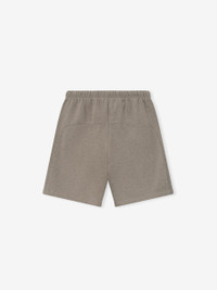 The Relaxed Sweatshort is made from 380gsm core fleece. It features a baggy, elongated fit that captures the essence of 90's basketball style, complete with a sportswear piping detail. The embroidered "Essentials" script logo is placed on the leg, while a "Fear of God Essentials" rubberized label is situated at the center front. Key features include side pockets and an encased elastic waistband with drawstrings for added comfort. DETAILS - 80% cotton / 20% polyester fleece, 380-gram - Model is 6'3" and wears size Large - Basketball fit - baggy, elongated fit - Embroidered "Essentials" script logo - Piping detail - Encased elastic waistband - Heavyweight drawstring with rubberized tip - Side seam pockets - "Fear of God Essentials" translucent rubberized label - Imported