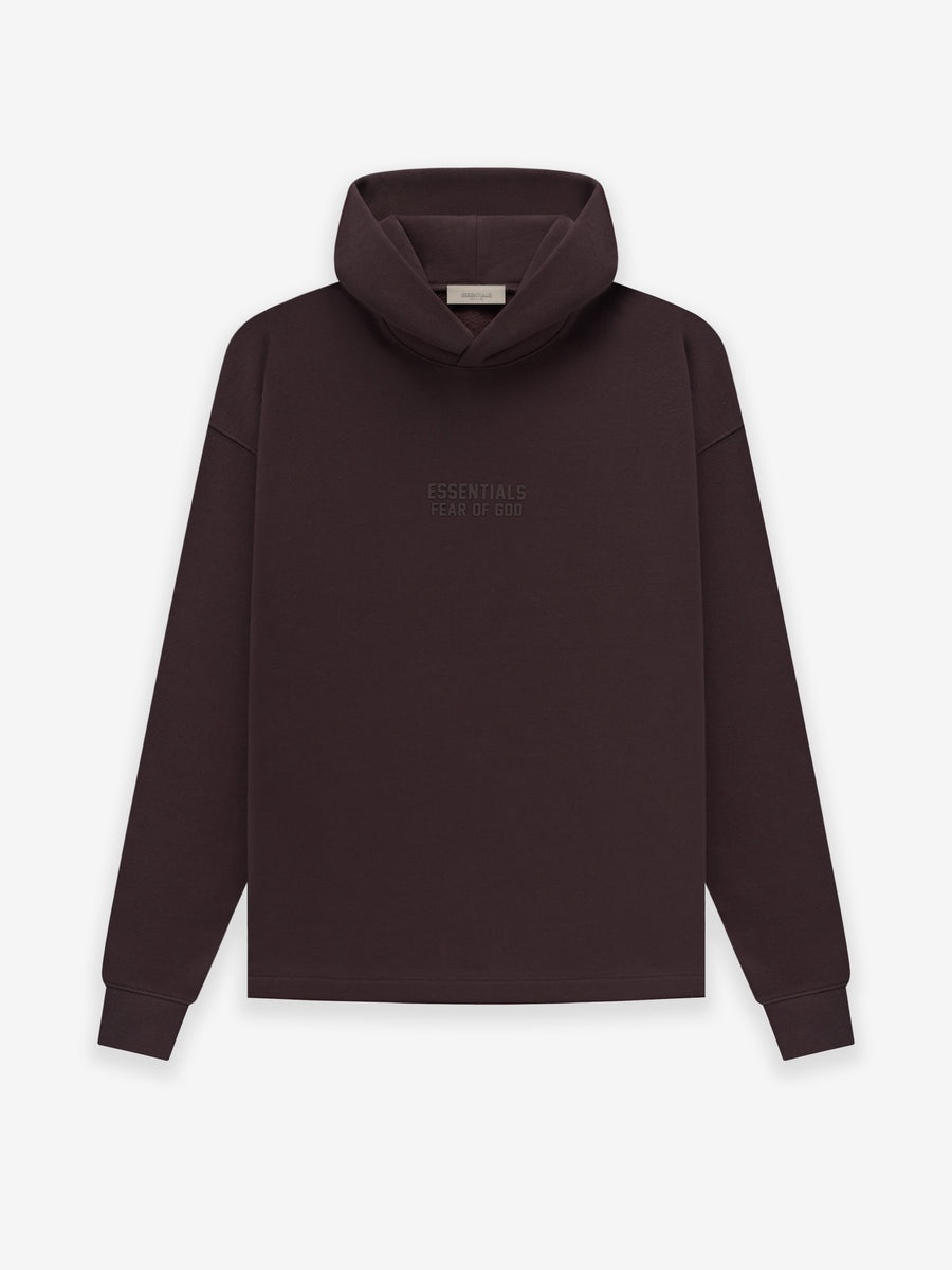 The relaxed hoodie fit is designed with a voluminous silhouette in the body and no waist hem to provide freedom of movement. A modern rubberized Essentials Fear of God logo is on the chest, and an Essentials rubberized label is stitched on the double-layered hood. DETAILS - Relaxed fit - 80% cotton / 20% polyester heavyweight fleece - Essentials Fear of God rubberized logo on chest - Essentials rubberized label - Rib-knit cuffs - Imported - ESSENTIALS products are currently not available for purchase or shipment to Europe including Belgium, Luxembourg, and the Netherlands.
