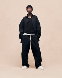 The Essentials relaxed trouser is a sportswear update to the traditional cotton khaki with volume in the leg and an encased elastic waistband with signature elongated drawstrings. The piece features a Fear of God rubberized label at the center front, drawcords at the ankle, side seam zipper pockets and back welt pockets for functionality. Model is 5'10 and wears size Medium. Model is 6'0 and wears size Medium. DETAILS - Relaxed fit - 68% cotton / 32% polyester woven - Fear of God rubberized label - Encased elastic waistband with elongated drawstring - Side seam pockets - Drawcord at ankle - Imported