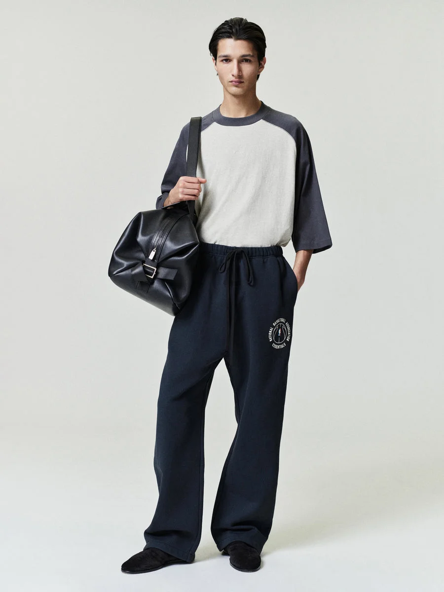 The NBA x Barkley Hendricks Tearaway Sweatpant is crafted from 520GSM heavyweight cotton fleece, providing structure and a substantial hand feel to its signature relaxed, straight-leg silhouette. Functional snaps along the sides deliver true tearaway capability. The leg is detailed with a puff-printed NATIONAL BASKETBALL ASSOCIATION lockup paired with the official NBA logo. Finishing touches include an encased elastic waistband with elongated drawcords, side-seam pockets, and a Fear of God Essentials label at the center front.