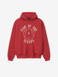 The Sixers x Barkley Hendricks 90s Hoodie is crafted from 520GSM heavyweight cotton fleece and designed in a relaxed, 90s-inspired silhouette. The front features a puff-printed FEAR OF GOD SIXERS graphic paired with the official NBA logo, while the back showcases Barkley Hendricks’ iconic Basketball Series artwork rendered in a 3D print that captures the texture and emotion of his brushstrokes. Finishing details include side pockets, rib-knit cuffs and waist hem, and a Fear of God Essentials label on the hood.