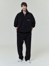 The Sport Half Zip is made in a 100% recycled polyester with a perforated lining . The mockneck pullover has a front half zip, with a relaxed fit for layering. The branding is minimalist, showcasing an embroidered "Essentials" script logo on the chest and a rubberized label from Fear of God Essentials at the back collar. DETAILS - 100% recycled polyester - 100% polyester perforated lining - Embroidered" Essentials" script logo - Essentials Fear of God translucent black bar - Relaxed fit - Mockneck - Front Half Zip - Imported