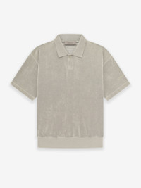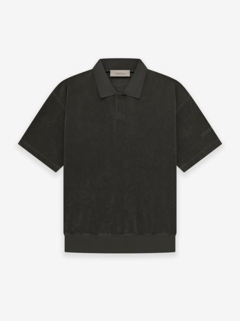 The short sleeve polo is made in terry cloth for vintage beach style but updated in a modern relaxed silhouette. The piece is framed in a rib-knit polo collar and waist hem. An Essentials rubberized logo is on the sleeve, and the trademark label is stitched at the back collar. DETAILS - 57% rayon, 22% cotton, 21% polyester terry cloth - Essentials rubberized logo on sleeve - Essentials rubberized label - Rib-knit collar and waist hem - Imported - ESSENTIALS products are currently not available for purchase or shipment to Europe including Belgium, Luxembourg, and the Netherlands.