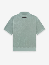 The short sleeve polo is made in terry cloth for vintage beach style but updated in a modern relaxed silhouette. The piece is framed in a rib-knit polo collar and waist hem. An Essentials rubberized logo is on the sleeve, and the trademark label is stitched at the back collar. DETAILS - 57% rayon, 22% cotton, 21% polyester terry cloth - Essentials rubberized logo on sleeve - Essentials rubberized label - Rib-knit collar and waist hem - Imported - ESSENTIALS products are currently not available for purchase or shipment to Europe including Belgium, Luxembourg, and the Netherlands.
