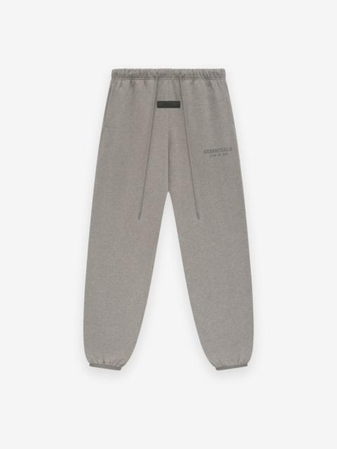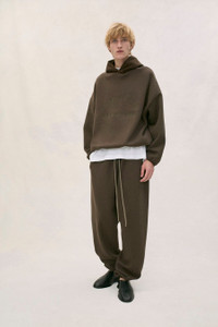 Essentials sweatpants are made in core fleece with a relaxed seat and leg for comfortable drape. An Essentials Fear of God soft touch logo is on the leg. Additional details include an encased elastic waistband with elongated drawstrings, side seam pockets, and a new elastic ankle hem finished in a stretch binding. A Fear of God rubberized label is at the center front. DETAILS - 80% cotton / 20% polyester heavyweight fleece - Essentials fit – relaxed leg and seat - Encased elastic waistband - Heavyweight drawstring with rubberized tip - Fear of God rubberized label at the center front - Side seam pockets - Elastic ankle hem with stretch binding - Imported