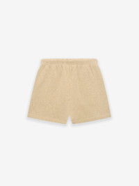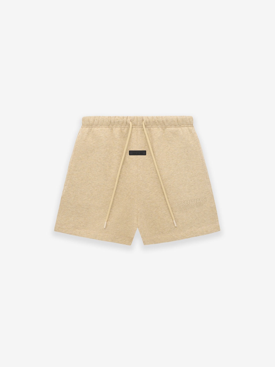 The Essentials sweatshort provides volume in the seat and leg for comfortable drape. The Essentials Fear of God logo is presented on the leg in a rubberized soft-touch applique. Additional details include an encased elastic waistband with elongated drawstrings, elastic ankle hem, and side seam pockets. A Fear of God rubberized label is at the center front. Model is 6'1 and wears size Medium. DETAILS - 80% cotton / 20% polyester heavyweight fleece - Essentials fit relaxed seat and leg - Essentials soft-touch rubberized logo on the leg - Fear of God rubberized label at center front - Heavyweight drawstring with rubberized tip - Encased elastic waistband - Side seam pockets - Imported