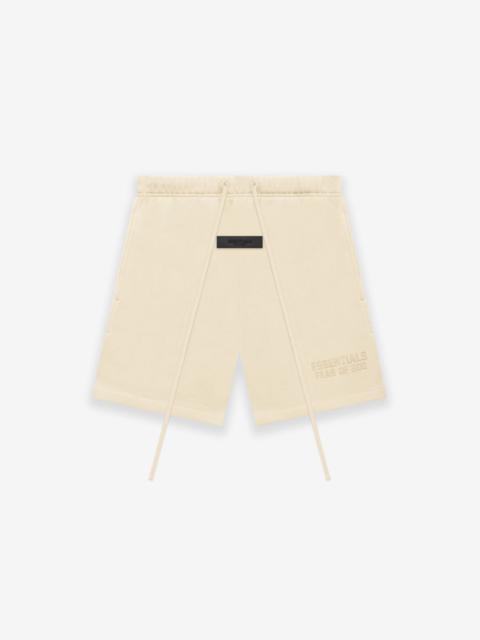 The signature fleece sweatshort is detailed with an Essentials Fear of God logo in a tonal velvet flocking reminiscent of vintage athletic school uniforms. An Essentials rubberized label is center front. DETAILS - Classic Essentials fit - 80% cotton / 20% polyester heavyweight fleece - Essentials Fear of God flocked logo on leg - Essentials rubberized label - Side seam pockets - Encased elastic waistband with drawstring - Imported - ESSENTIALS products are currently not available for purchase or shipment to Europe including Belgium, Luxembourg, and the Netherlands.