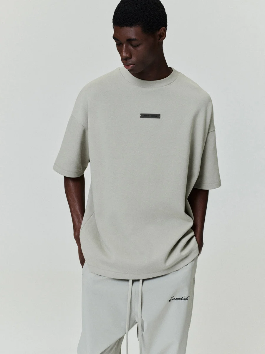 The 90s Fit Pique Crewneck is made from medium-weight cotton/poly pique knit. The crewneck tee features a 90s fit with oversized proportions and dropped shoulders. Minimalist branding includes a Fear of God Essentials rubberized label on the center front and the back collar. DETAILS - " - 100% cotton, 230-gram - MODEL IS 6'2" AND WEARS SIZE MEDIUM IN ABBEY STONE - 90s fit -oversized proportions with dropped shoulders - Rib-knit crewneck - "Fear of God Essentials" translucent rubberized label - Imported