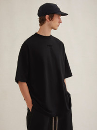 The Essentials tee shirt returns to a classic crew neckline while maintaining the relaxed proportions in the body and sleeves. The Essentials Fear of God logo is sized subtly in a rubberized soft-touch applique. A Fear of God rubberized label is at the back collar. Model is 6'1 and wears size Medium. DETAILS - 100% cotton jersey - Essentials fit - relaxed body, sleeves, elongated - Classic rib-knit collar - Essentials Fear of God soft-touch rubberized logo - Fear of God rubberized label - Classic rib-knit collar - Imported