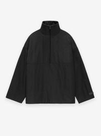 The Textured Nylon Halfzip Pullover is made from heavy crinkle nylon for bold structure and full perforated poly lining for comfort. The piece has half-zip front to adjust the high neckline, as well as a stylized back vent. Minimalist branding is included with the Essentials Fear of God black bar at the center front. DETAILS - 100% recycled nylon - 100% polyester perforated lining - Essentials relaxed fit - Half-zip front - Stylized back vent - Essentials Fear of God rubberized label - Imported