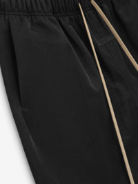 The Textured Nylon Soccer Short is made from heavy crinkle nylon for bold structure and full perforated poly lining for comfort. The relaxed leg short has an encased elastic waistband, elongated drawstring, and side pockets. Minimalist branding is seen in the Essentials Fear of God black bar at center front. DETAILS - 100% recycled nylon - 100% polyester perforated lining - Relaxed leg fit - Encased elastic waistband - Heavyweight drawstring with rubberized tip - Side pockets - Essentials Fear of God rubberized label - Imported