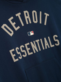 The Tigers Sport Hoodie is crafted from core fleece, offering an elevated balance of softness, structure, and lasting comfort. Cut in a relaxed sport fit, it drapes with more ease through the body and extended length compared to the Essentials classic silhouette. The front features a bold puffer-print graphic reading "Detroit Essentials" alongside the official MLB insignia, while the back is finished with the authentic Detroit "D" logo. Additional details include a kangaroo pocket, rib-knit cuffs and hem. The signature rubberized Fear of God Essentials label accents the hood. DETAILS - 80% COTTON / 20%POLYESTER FLEECE - ESSENTIALS SPORT FIT: RELAXED, CROPPED - TIGERS ESSENTIALS +MLB LOGO - DETROIT LOGO - KANGAROO POCKET - ELASTIC BINDING AT CUFF AND WAIST HEM - IMPORTED